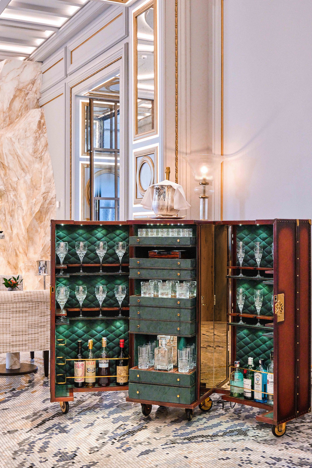 To transport guests of the Donatello Bar back to those enchanting Belle Époque atmospheres, a special Bar Cabinet inspired by early 20th-century travel trunks was commissioned. It was handcrafted by a company whose past commissions include an installation at the Taj Mahal Palace hotel in Mumbai and projects for the royal family of Qatar.